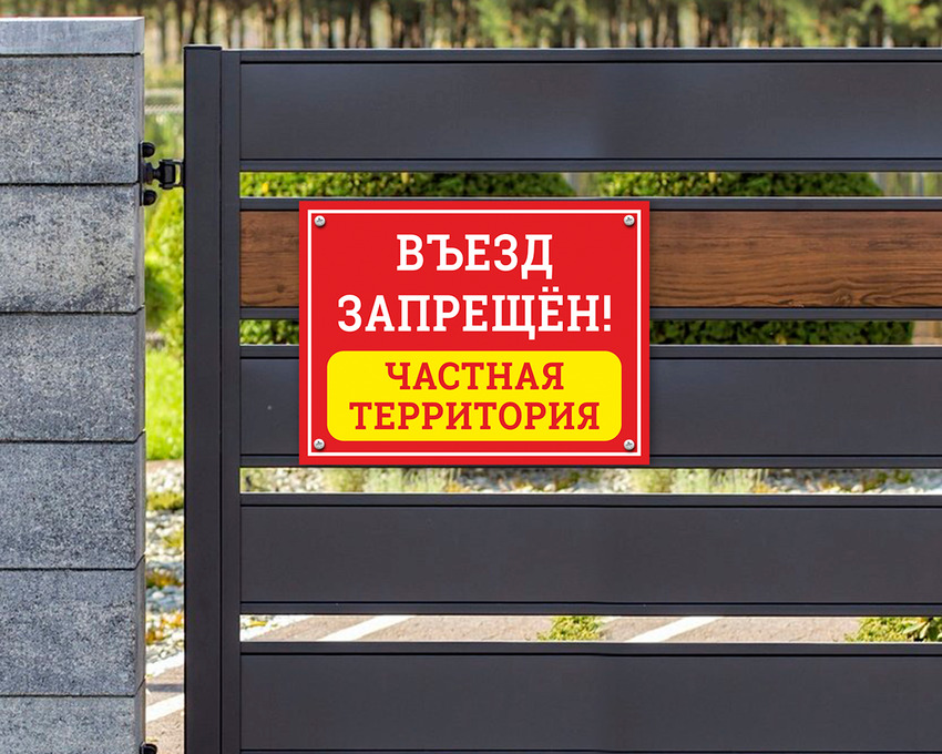 Табличка «Въезд запрещен. Частная территория.»